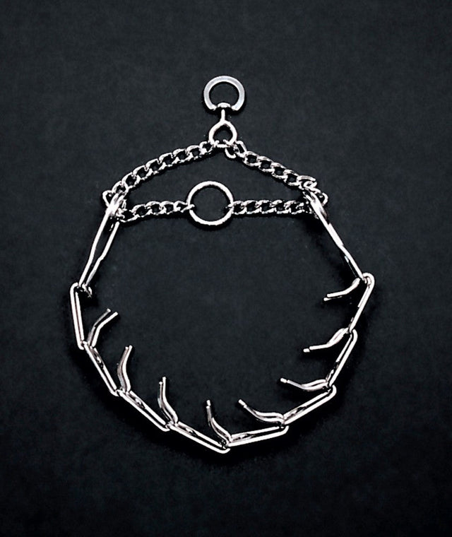 Our Titan Chain Dog Prong Training Collar is argon welded and chrome plated for maximum strength and durability. It will not tarnish, rust or break. Featuring a link closure style, prong links unfasten for easy collar placement and removal. Extra links and vinyl comfort tips are available for this training collar. Available in four sizes to fit most dogs. Chain training collars are safe, effective training tools with proper use.